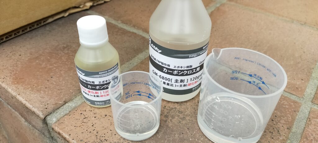 二液混合なんで、説明書通り、主剤3・硬化剤1の割合で混ぜる。
