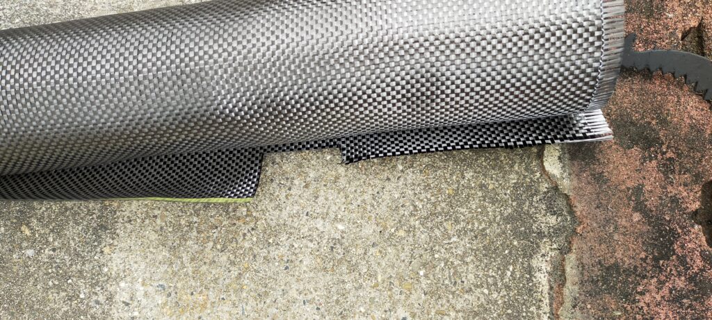 カーボンクロスは、カットすると切り口からほつれてきますので、テープを張って切り口を保護するようにしましょう。