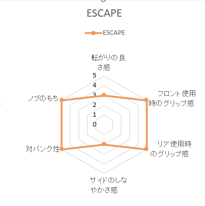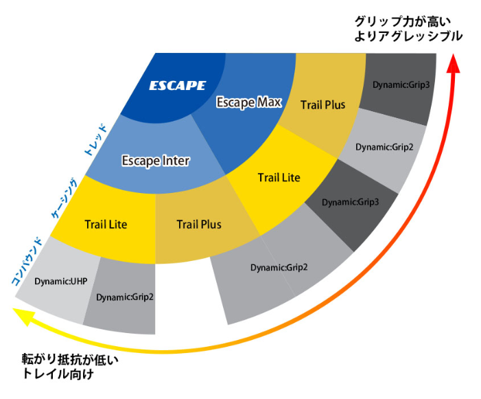 8パターンのうち実際に存在するのは7パターンみたいです。あと発売時期が違う無印のESCAPEがありますので、ESCAPEと名の付くタイヤは全部で8種類あることになります。